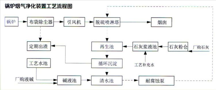 該工藝綜合石灰法與鈉堿法的特點(diǎn),解決了石灰法的塔內(nèi)易結(jié)垢的問題,提高了鈉堿法吸收效率高的優(yōu)點(diǎn)。