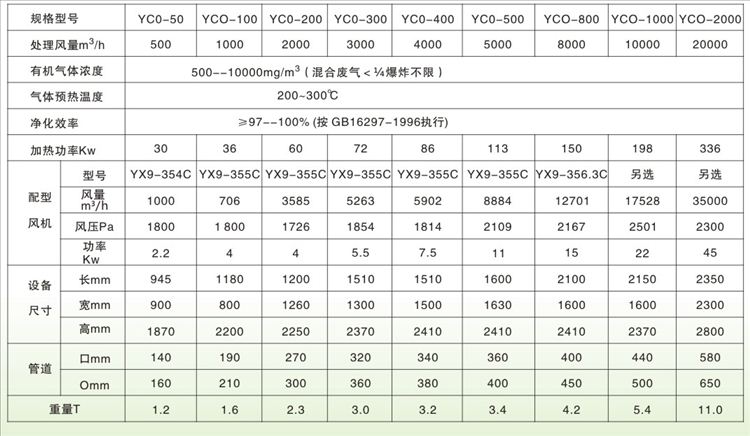 YCO型系列催化凈化裝置是采用低溫氧化技術(shù),即在貴金屬催化劑作用下,將有機(jī)氣體加熱到分解溫度使氣體凈化。在高濃度低風(fēng)量廢氣環(huán)境下使用效果最好。